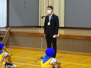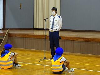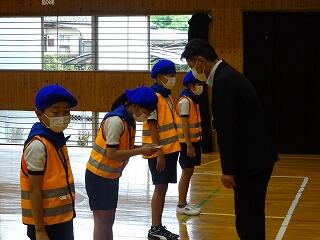 5月13日(金)、朝の活動の時間に交通少年団結団式が行われました。代表として6年生が、団員証を市役所危機管理課の方から受け取り、交通安全に気を付けて、下級生の模範となることを誓いました。