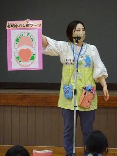 また、養護教諭の神谷先生から、「口と歯の健康週間」の話がありました。先日行われた歯科検診の結果より、奥歯が虫歯になりやすいということが分かりました。歯みがきの際、奥歯をしっかりとみがきたいですね。
