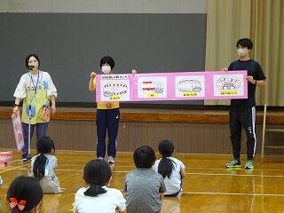6月22日(水)の朝の活動時間は児童集会で、くろしお委員会と2年生の発表でした。