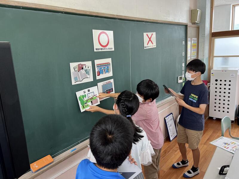 6月2日(木)、市の税務課職員の方2名が来られ、6年生教室で「租税教室」が行われました。この授業は、将来に向けてお金の価値や納税の大切さについて考えることを目的として設定しました。授業後、子どもたちに感想を聞くと、「税金が無い世界は考えられない」、「税金があるから勉強ができる」など、子どもたちなりに税金の大切さを感じ取ることができました。