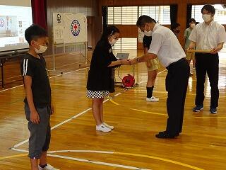 JRCの活動についての動画を見て活動内容を理解し、誓いのことばを全児童で言いました。また、代表で6年生にJRCの缶バッジが校長先生より渡されました。これから、気づき、考え、行動するという実践目標を意識して、取り組んでいきます。