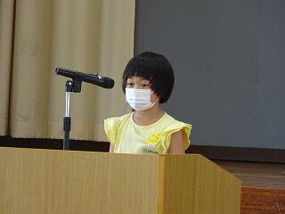 7月21日(木)の3校時に1学期の終業式を行いました。児童作文では、1・3・5年生より代表1名が発表しました。1学期にできるようになったこと、2学期がんばりたいこと、これまでの思い出など、自分の思いを上手に発表することができました。校長先生からは、早寝早起き朝ごはん、挨拶、周囲にやさしく接することについて、また、通知表をもとに子どもたちが1学期頑張ったことについてお話がありました。宮﨑先生からは、有明小のこどもたちの素晴らしいところ、夏休み中に気を付けることについて話がありました。