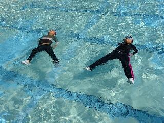 7月11日(月)の午前中、低・中・高学年に分かれて、着衣泳の指導を行いました。この活動は、毎年この時期に行っており、アクシデントが起きて、服を着たまま水中に投げ出されたら、どうすればよいかを考えたり、体験したりする活動です。合言葉にしている「浮いて待つ」を中心に体験をしました。子どもたちは、上手に浮くことができていました。