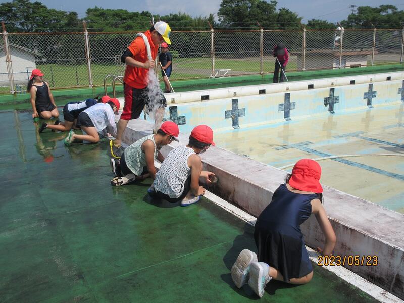 5月23日(火)、子どもたちと職員みんなでプール掃除を行いました。