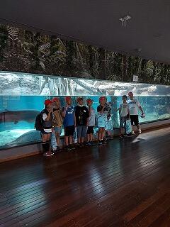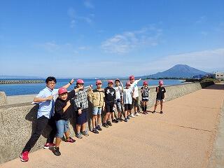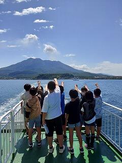 1日目は、溶岩道路を通り、桜島フェリーで鹿児島市へ渡りました。写真の通り天気にも恵まれ、予定通り、鹿児島水族館見学、鹿児島市内の自主研修を行うことができました。体調面も心配なく、皆元気です。これからホテルに向かいます。