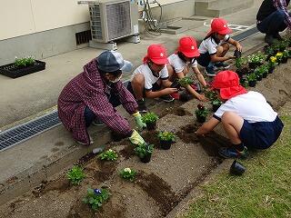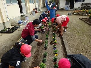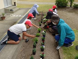 11月16日(木)に、地域の方と一緒に花壇に花を植えるグリーンタイムを実施しました。この活動は、本年度2回目で、今回は塩町地区の方9名に参加していただきました。地域の方に植え方を教えていただきながら一つ一つ丁寧に植えることができました。花壇が華やかになり、明るくなりました。ご協力いただきました塩町地区の方々、ありがとうございました。