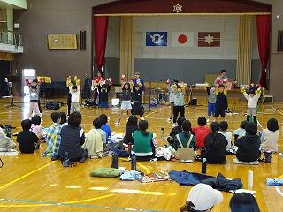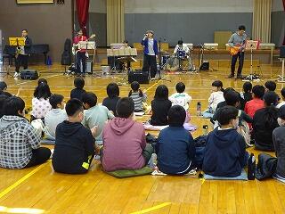 11月25日(土)の午後、有明小体育館で「有小ライブ」という音楽鑑賞会が行われました。この音楽鑑賞会は、毎年「ワタナベイベェズ」という以前本校に勤務されていた渡邊先生がバンドマスターを務められているバンドに来ていただき、演奏していただいています。バンドの演奏だけでなく、バンドの歌に合わせた1・2年生や6年生のダンスもありました。さらに今年はスペシャルゲストとして、吉松教育長も来られて1曲歌われました。迫力のある生演奏が聞けたり、いろいろな楽器に触れさせてもらえたりしたので、子どもたちは大満足でした。ワタナベイベェズの皆様、吉松教育長、ありがとうございました。