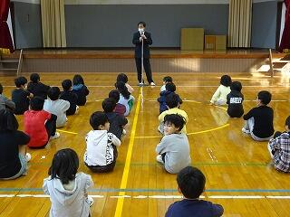 校長先生からは、「早寝・早起き・朝ご飯をがんばりましょう」と、「目指す子ども像にある『やさしい子』を目指して努力しましょう」という2点について話がありました。