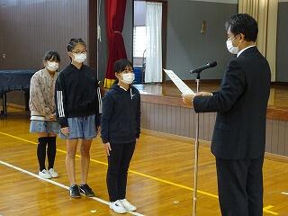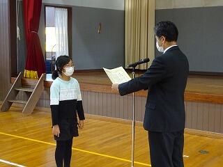 また、「税に関する絵はがきコンクール」で奨励賞を受賞した6年生の黒木亜衣奈さんの表彰も行われました。受賞、おめでとうございます。