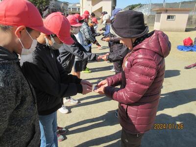 1月26日(金)の午前中、有明地区や高松地区等の数名の方を交え、6年生がグラウンドゴルフで交流を図りました。6年生は、日頃の地域の方への感謝をもつとともに、卒業を前に楽しい思い出ができたようです。成績発表では、地域の方が上位を独占し、6年生は、地域の方の競技の様子を見ながら「やっぱり上手でした!」と、感想を漏らしていました。