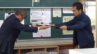 1月25日(木)に、令和5年度キャリア教育推進シンポジウムが東京都で開催され、本校がキャリア教育の充実・発展に尽力し顕著な功績が認められたということで、文部科学大臣表彰を受けました。25日当日はオンラインで参加したため、表彰状が串間市教育委員会に届き、2月7日(水)に吉松教育長より授与されました。この表彰は、保護者、地域、行政の方の活動への協力があってこそのものです。ご協力、ありがとうございました。