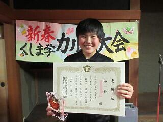 そう思っていたところに、早速吉報が届きました。昨日7日(火)に行われた「くしま学カルタ大会」で6年の津曲和美さんが優勝しました。