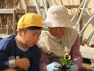 コミュニティ協議会、自治会、老人会のご協力の下、和やかに花を植えていきました。