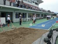 女子の走り高跳びは、雨の影響で途中で競技が中止になりました(最後まで競技ができなかった児童は、後日各学校で行うことになりました)。