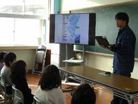 はじめの会では、はじめに校長が話をしたあとに串間土木事務所の方に土木の日や仕事についてスライドを使って説明をしていただきました。