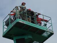 その後は、体験活動ということでバックホーやドローンを操作したり、高所作業車に乗せてもらったりしました。