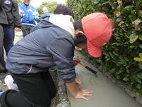 串間市建設業協会の青年部の方には朝早くから来ていただき、屋外掲示板の下をコンクリートで固めていただきました。