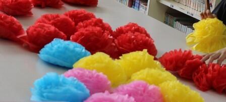 この日は 運動会を飾る お花(紙)作りをしました。
