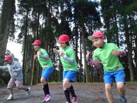 全校体育で、リレーの練習をしました。まずは、元気よく走ります。
