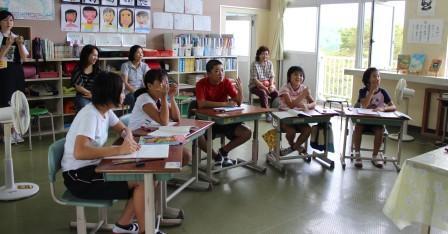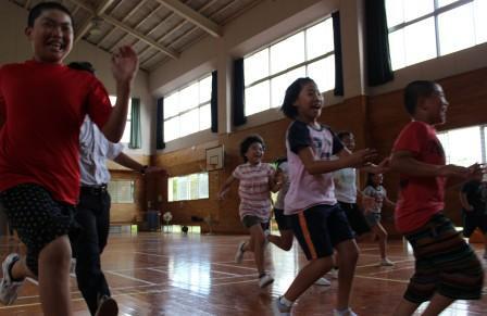 2・3・4年生が シュモン先生と 英語の勉強をしています。