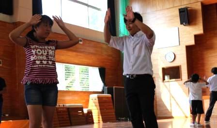 昼休みの時間を使って 自分たちで作った 応援の練習をしています。