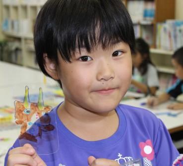 プラスチックの板に 自分の好きな絵を描きます。 色も、好きな色で・・・。