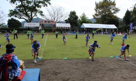 他の小学校の人と 力を合わせて 勝利に向かってプレーに応援にがんばっていました。