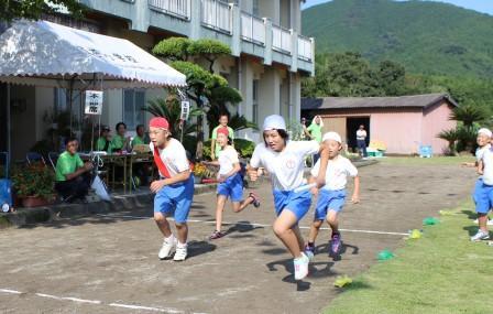 今日は、串間市の小学生が集まって、陸上競技に挑戦しました。