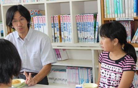 2・3・4年生が シュモン先生と 英語の勉強をしています。