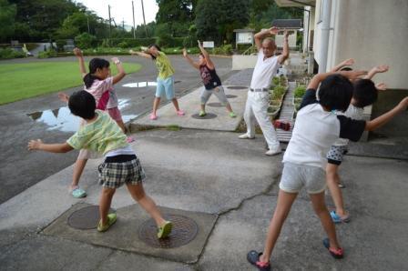 夕方、地域の放送を使って、国語の教科書などを読みます。