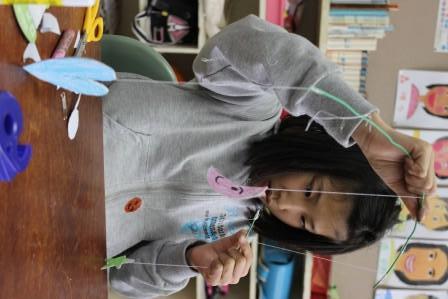 飾ってみると、ふわふわと動いて、かわいい作品になりました。