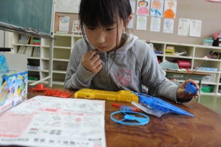 4年生の理科では、電気のことを勉強します。この日は、電気で動くモーター作り。