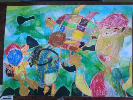 担任の先生とがんばって作品が仕上がりました。
