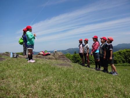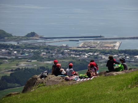 山頂でのレクレーションの始まりは、「ピクニック」を歌いました。心地よい風が、笠っ子達の歌声を串間の町に運んでくれたのではないでしょうか。