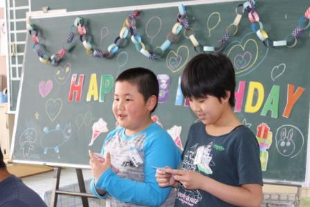 4月に誕生日を迎えた皆さんへの質問や、お祝いメッセージのプレゼントで、お祝いされる側は、ちょっと照れながらもうれしそうです。司会の二人は大役を立派に果たし、お祝いする側もされる側も、みんなうれしいひとときでした。