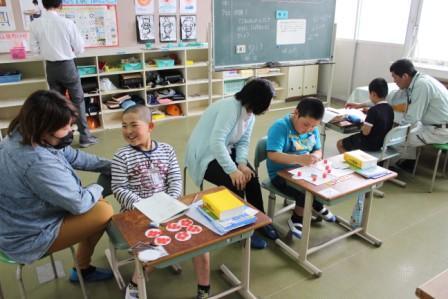 3・4年生は算数でした。3年生になって複式指導になり、がんばっていますが、いつもなら自分たちだけで学習する時間にお家の方が見守って下さり、ありがたいことです。