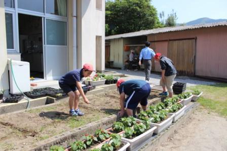 笠っ子のおじいさまから、毎年いただいています。ありがとうございます。今日は、ようやく雨が上がり、みんなで植えることができました。