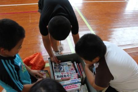 本を手に取っては、おもしろそうと目を輝かせたり、互いに本を薦め合ったり、本を選ぶのは楽しいものですね。借りた本を開き、早速読みふける子ども達もいました。
