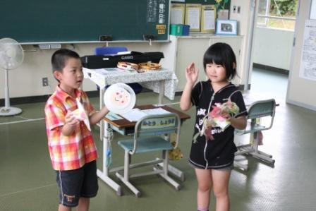 ALTの先生と一緒に英語の勉強をしました。一人一人、楽しんで英語の発表をしていました。みんな緊張することなく、元気いっぱいでした。