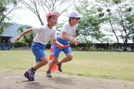山頂でのレクレーションの始まりは、「ピクニック」を歌いました。心地よい風が、笠っ子達の歌声を串間の町に運んでくれたのではないでしょうか。