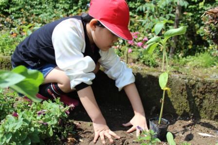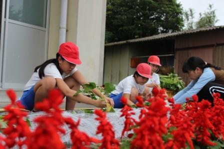 そして5時間目は、心配していた雨はしばらく降るのを待ってくれました。楽しみにしていた芋植えもできました。「紅はるか」の苗です。おいしいお芋が収穫できる日が楽しみです。