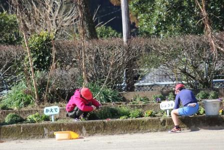 秋に植えた花たちが、寒い冬をがんばって乗り越えようとしています。