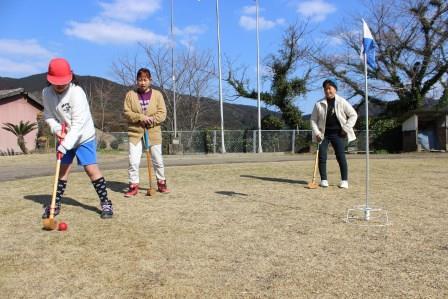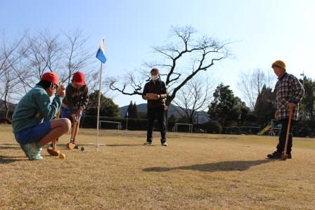 地域の方々や保護者のみなさんと一緒にグランドゴルフを楽しみました。