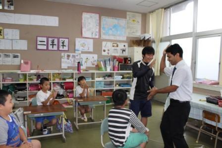 2・3・4年生が シュモン先生と 英語の勉強をしています。