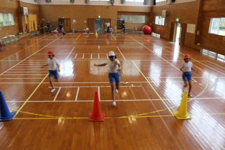 体育館の中でも チャレンジ走や リレーもできます。
