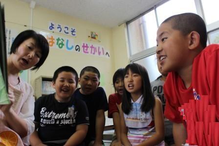 2年生と 3・4年生が 合同で朝の会を行っています。