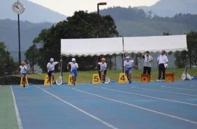 市の陸上教室には、5・6年生全員が出場しました。
