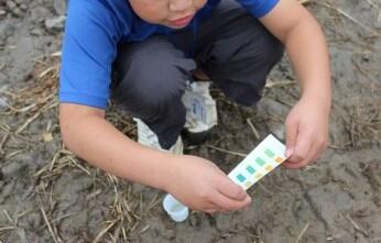 地域の川にすむ生き物を調べたり、水質をチェックしたりします。