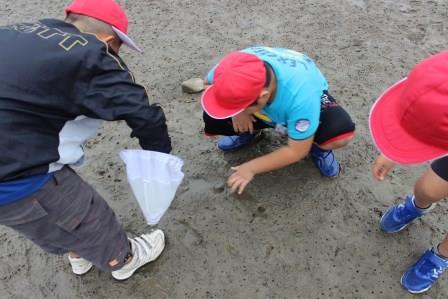 本城干潟にも行きました。ハゼやカニを見つけて大喜び!!