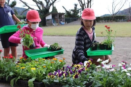 笠祇小学校で過ごす残り4ヶ月半、心を込めて花のお世話をします